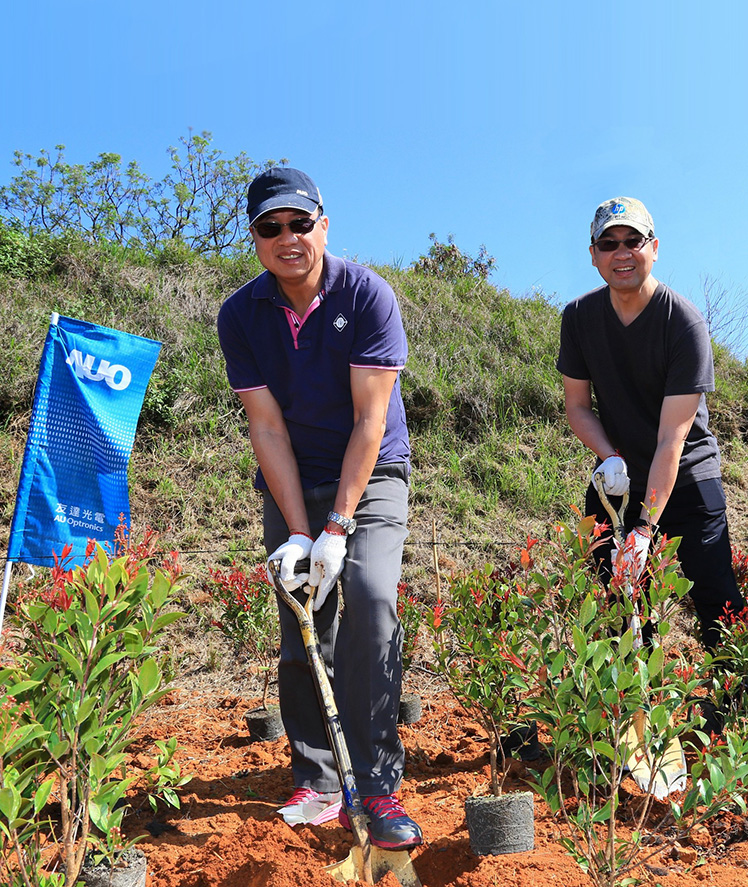今年號(hào)召近 2000 名同仁及眷屬擔(dān)任植樹志工,在友達(dá)后里廠親手種下約一萬(wàn)棵樹,並結(jié)合親子寓教於樂(lè)的環(huán)保小常識(shí)問(wèn)答活動(dòng),深化環(huán)境教育理念,期能以親善大地的具體行動(dòng),實(shí)踐對(duì)環(huán)境永續(xù)的理念與承諾。